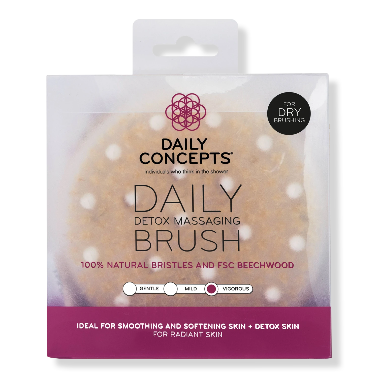 - The Daily Detox Massage Brush is a dry brush with massaging nodules to help with blood circulation.