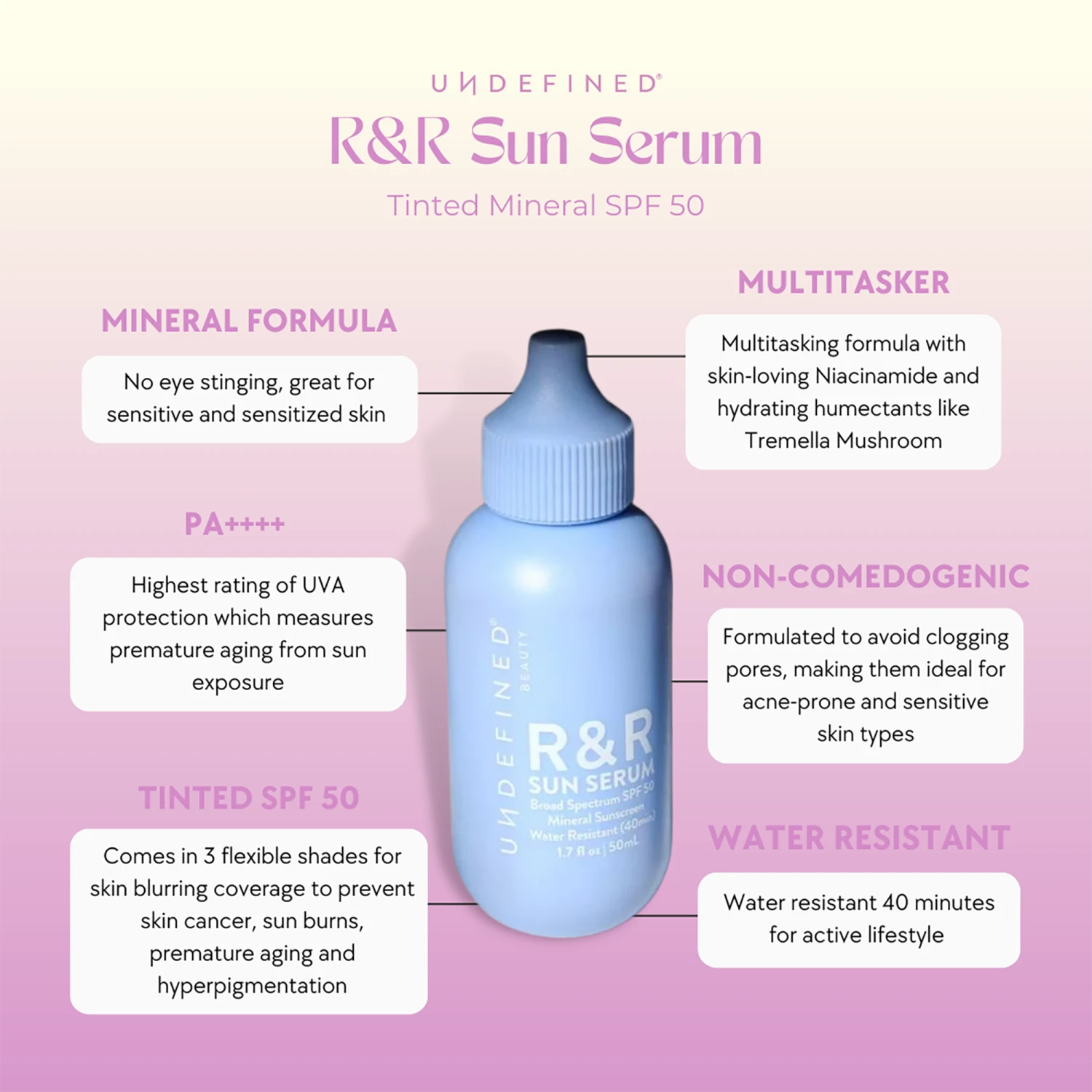 - Universally Flattering Tinted SPF 50 with skin nourishing actives to hydrate while protecting against broad spectrum UVA/UVB, pollution and blue light protection.